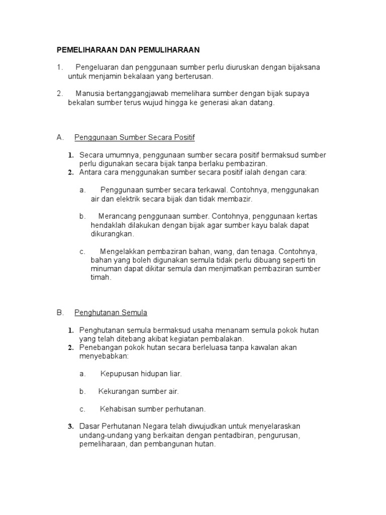 Pemuliharaan pemuliharaan bermaksud usaha memulihkan dan memelihara sumber alam semula jadi dengan bijak dan sistematik supaya dapat dinikmati oleh generasi akan datang. Kesan kepada alam sekitar akibat perbuatan manusia begitu besar dan kini kita telah dapat merasai perubahan tersebut. Nur asiah binti abdul majid moe 11 months ago. Pemeliharaan dan pemuliharaaan alam sekitar d i s e d i a k a n o l e h : Semoga perkongsian mengenai nota ringkas sains tingkatan 5 (bahasa melayu) dapat membantu semua pelajar yang mengambil mata pelajaran sains dalam peperiksaan spm.